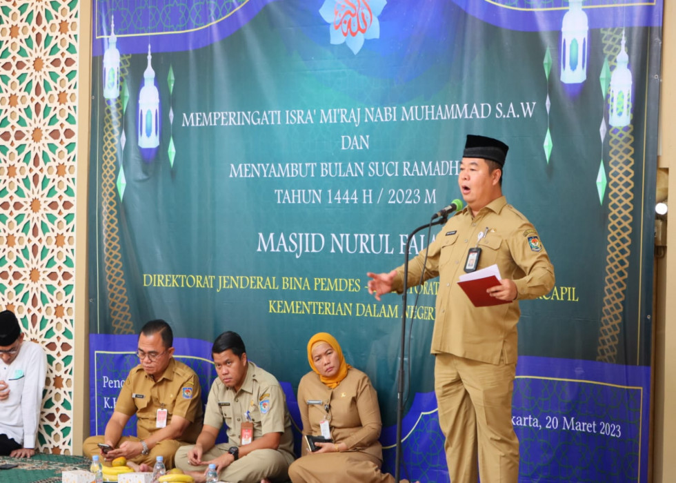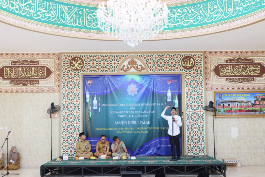Jakarta - Direktorat Jenderal (Ditjen) Kependudukan dan Pencatatan Sipil (Dukcapil) dan Ditjen Bina Pemerintahan Desa (Pemdes) Kementerian Dalam Negeri menggelar acara Isra Mi'raj Nabi Muhammad SAW. Acara ini sekaligus untuk menyambut Bulan Suci Ramadhan 1444 Hijriyah/2023 Masehi di Masjid Nurul Falah, Komplek Kantor Ditjen Pemdes dan Dukcapil Kemendagri, Jakarta, Senin (20/3/2023).