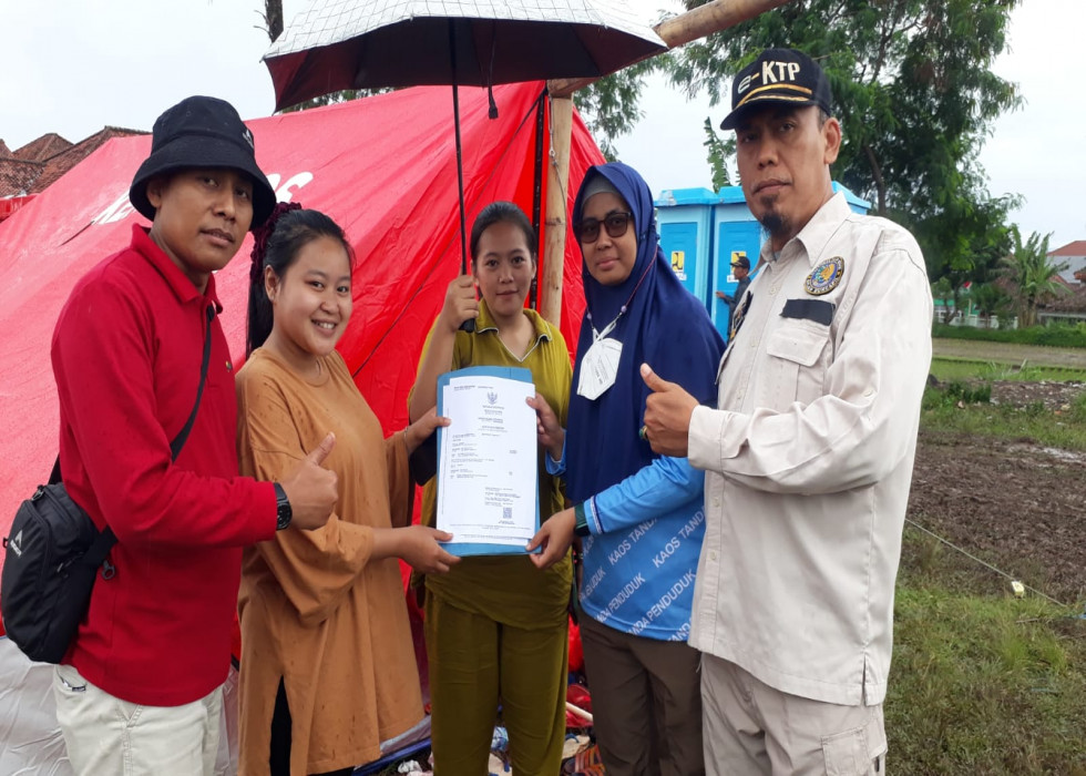 Di kesempatan itu, Indersan secara langsung juga melaporkan progres pendataan dan layanan dokumen kependudukan tersebut kepada Gubernut Jawa Barat Ridwan Kamil yang melakukan kunjungan di posko korban gempa Kecamatan Warungkondang.