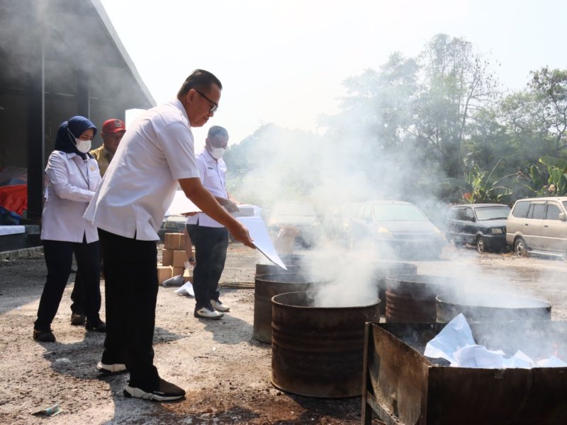 Bogor - Ditjen Dukcapil Kementerian Dalam Negeri melakukan pemusnahan barang milik negara (BMN) invalid. Menurut Sekretaris Ditjen Dukcapil Hani Syopiar Rustam, tindakan ini adalah bagian dari siklus pengelolaan BMN.
