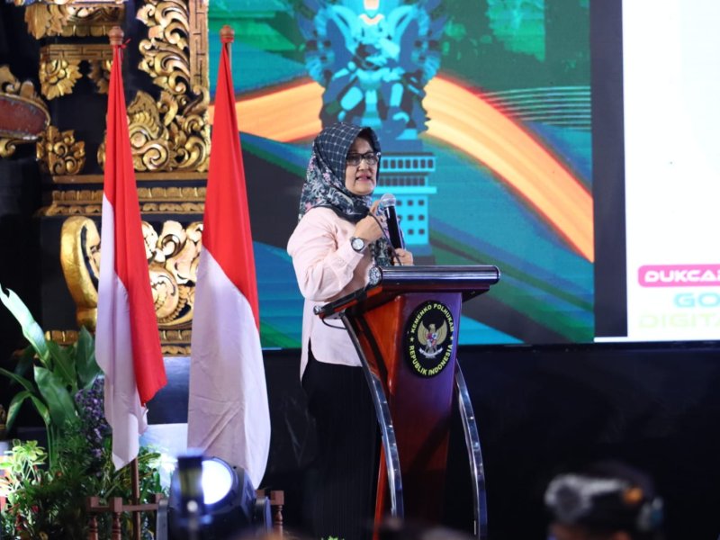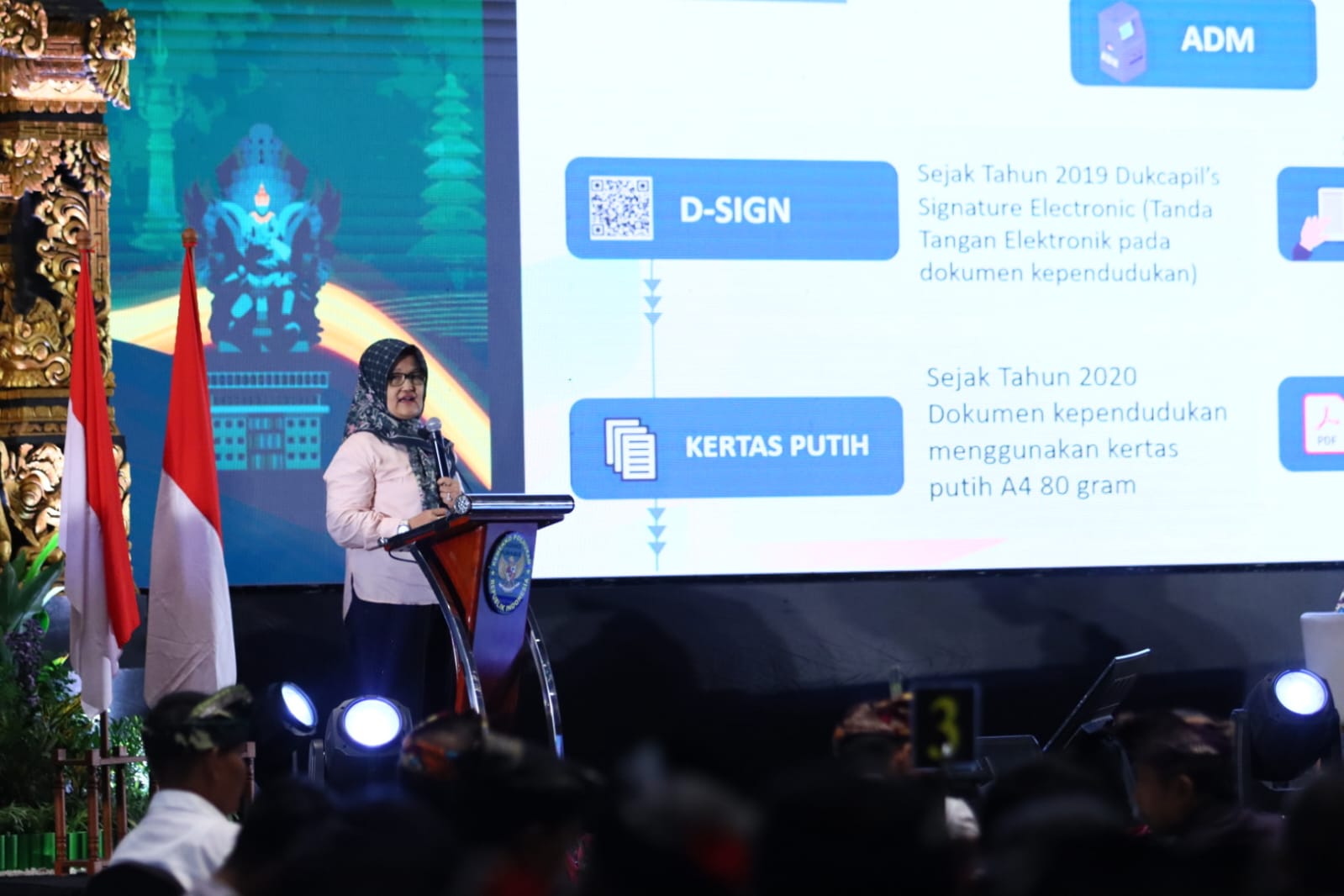 Direktur PIAK Handayani Ningrum mewakili Dirjen Dukcapil Teguh Setyabudi pada acara Rembuk Gerakan Indonesia Tertib bertema "Mewujudkan Budaya Tertib Menuju Indonesia Emas 2045" di Kuta, Denpasar, Rabu (6/3/2024). [Foto: Dukcapil/Rendi]