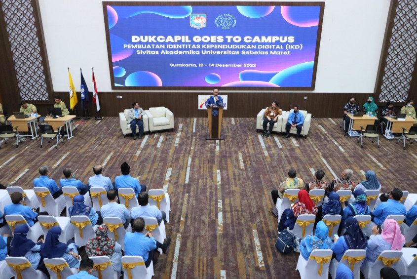 Solo — Universitas Sebelas Maret (UNS) Surakarta menjadi kampus pertama yang berpartisipasi dalam program Dukcapil Goes to Campus. Ini merupakan program Direktorat Jenderal Kependudukan dan Pencatatan Sipil Kementerian Dalam Negeri yang memberikan prioritas layanan pembuatan Identitas Kependudukan Digital (IKD). Target program ini adalah sivitas akademika UNS, terutama yang ber-KTP Solo Raya.