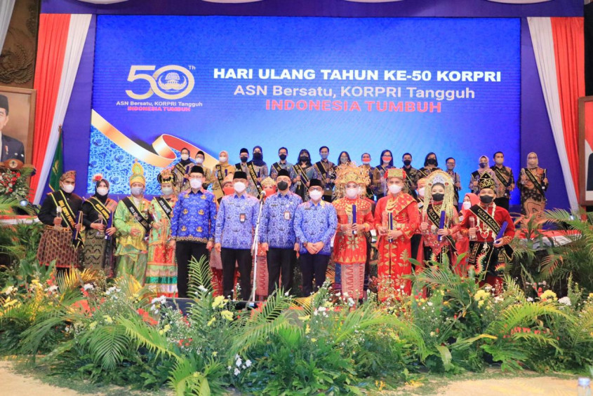 Pada giat HUT Emas 50 Tahun Korpri ini pula, Dewan Pengurus Korpri Nasional memberikan sejumlah piagam penghargaan dan piala antara lain kepada 37 Duta Korpri, terdiri pasangan ASN milenial dari 21 kementerian/lembaga dan 16 pasangan ASN dari level provinsi.