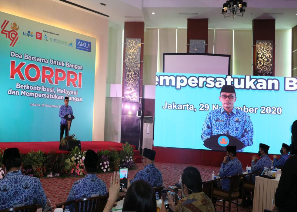 Jakarta - Di tengah suasana pandemi Covid-19, HUT Korpri ke-49 dirayakan secara sederhana. Tidak dengan upacara atau perhelatan mewah, melainkan menggelar acara berdoa bersama lintas agama dan kepercayaan.
