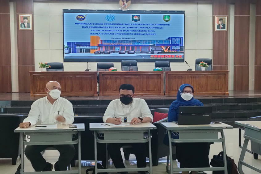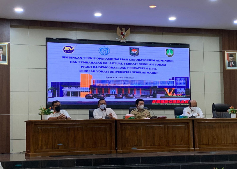 Jakarta - Universitas Sebelas Maret (UNS) mengundang Ditjen Dukcapil Kementerian Dalam Negeri dalam Bimbingan Teknis Operasionalisasi Laboratorium Adminduk dan Pembahasan Isu Aktual terkait sekolah vokasi prodi D4 Demografi dan Pencatatan Sipil di kampus UNS Surakarta, Senin (28/3/2022).