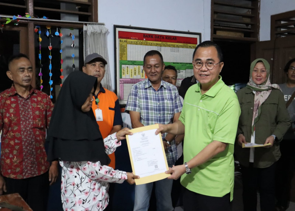 Usai bertemu Kades Bunisari, Sesditjen Dukcapil menyerahkan secara simbolik akta kematian kepada 3 orang ahli waris korban.
