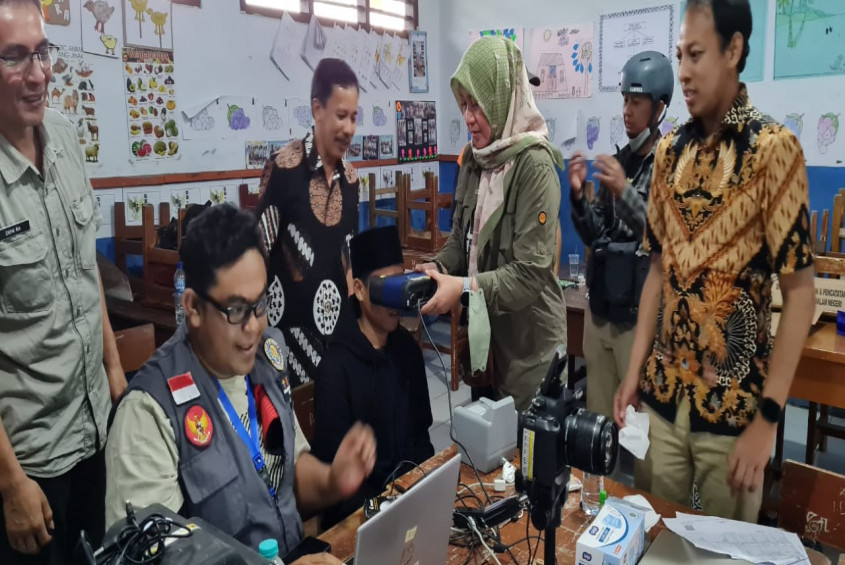 Setelah 9 hari bertugas, Sesditjen Dukcapil Hani Syopiar Rustam melakukan monitoring dan evaluasi dengan mengunjungi dan memberikan dukungan kepada Tim Satgas II Peduli Cianjur di SDN Bunisari, Kecamatan Warungkondang, Cianjur, Jumat (2/12/2022).