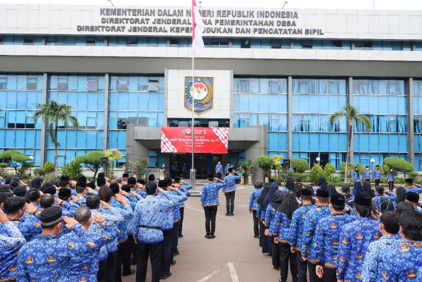 Upacara bendera dipimpin oleh Sekretaris Ditjen Dukcapil Hani Syopiar Rustam dan dihadiri oleh seluruh eselon setingkat di lingkungan Ditjen Dukcapil dan Ditjen Pemdes.