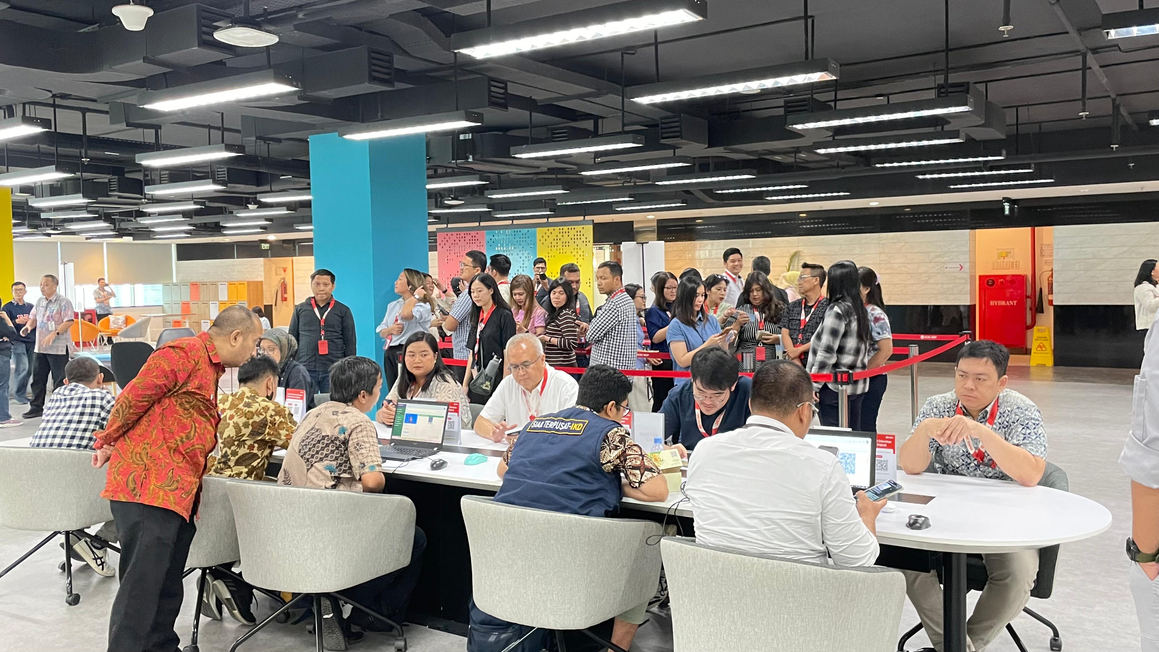 Pelayanan jemput bola layanan adminduk dan aktivasi IKD di lantai 16 OCBC Tower ini dilayani 12 personil tim teknis Ditjen Dukcapil didukung Dinas Dukcapil Provinsi DKI Jakarta.