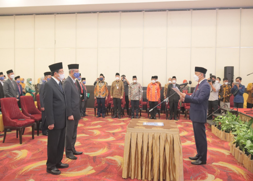 Kendari - Ketua Umum Dewan Pengurus Korpri Nasional Prof. Zudan Arif Fakrulloh resmi melantik 135 Dewan Pengawas, Dewan Hakim dan Panitera MTQ V Nasional Korpri pada Ahad (14/11/2021) pagi di Kendari, Sulawesi Tenggara.