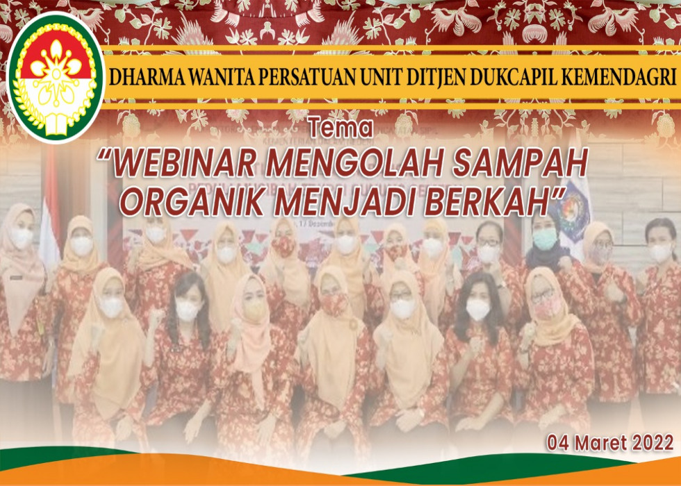 Sebagai bagian dari program kerja terutama untuk meningkatkan pengetahuan para ibu, DWP Ditjen Dukcapil menggelar sesi Webinar bertema "Mengolah Sampah Organik Menjadi Berkah", Jumat (4/3/2022).
