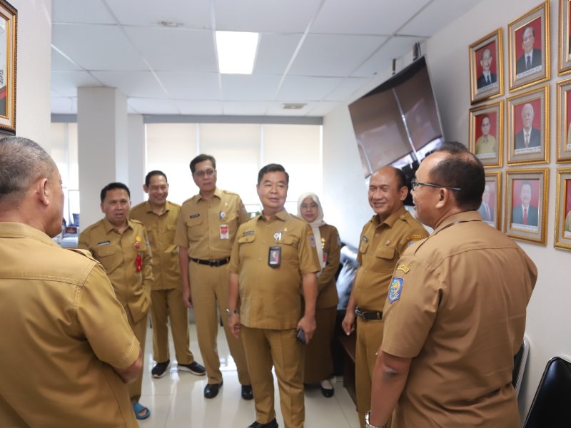 Dirjen Dukcapil Teguh Setyabudi bersilaturahmi dengan para pejabat struktural Pimpinan Tinggi Pratama di hari pertama masuk kerja setelah libur lebaran, Selasa (8/4/2025). [Foto: Dukcapil/Satrio]