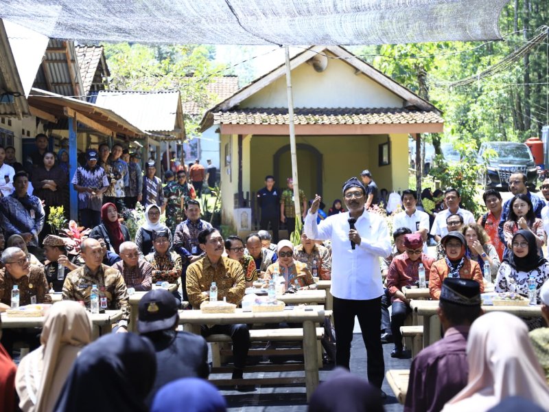 Mensos Saifullah Yusuf dan para menteri serta pejabat Jakarta berada di Dusun Suko Sumbermanis di Kelurahan Gombengsari, Kecamatan Kalipuro, Banyuwangi, mengamati langsung proses pendaftaran bansos yang berlangsung cepat dan mudah. (Foto: Dukcapil/Lukman)