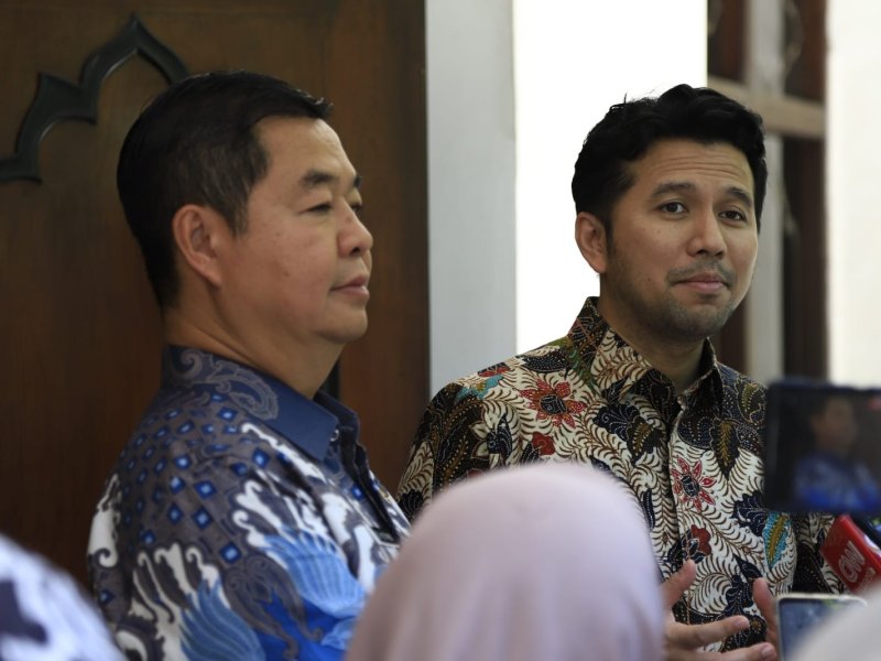 Wakil Gubernur Jawa Timur Emil Elestianto Dardak bersama Dirjen Dakcapil Kemendagri, Teguh Setyabudi, yang mewakili Menteri Dalam Negeri memberikan keterangan pers usai rapat Monitoring Kamtibmas Jawa Timur di Surabaya, Kamis (11/9/2025). [Foto: Dukcapil/Lukman]