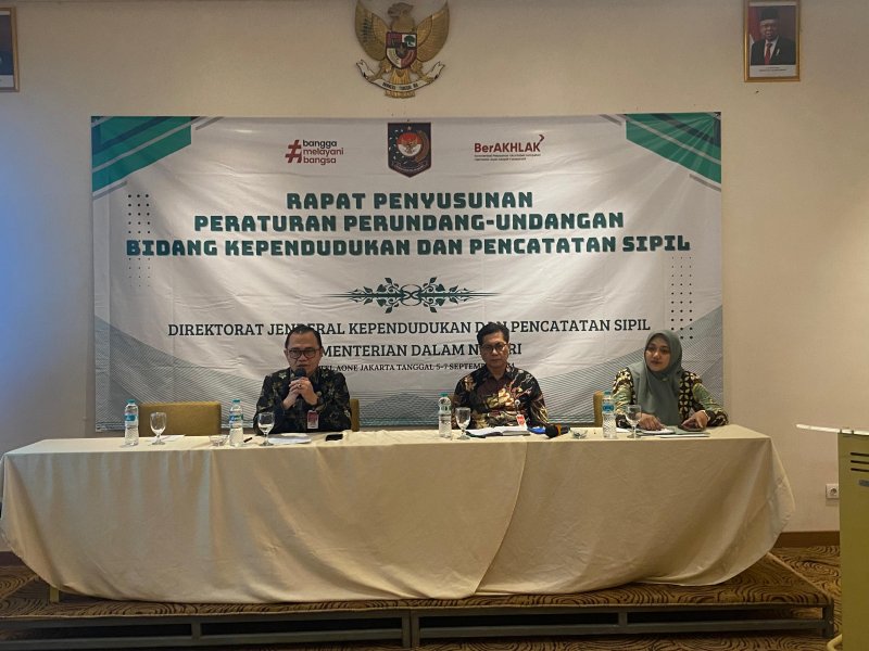 Jakarta - Sekretaris Ditjen Dukcapil, Hani Syopiar Rustam memimpin rapat strategis penyusunan peraturan perundang-undangan bidang kependudukan dan pencatatan sipil di Hotel Aone, Jakarta Pusat, Kamis (5/9/2024).